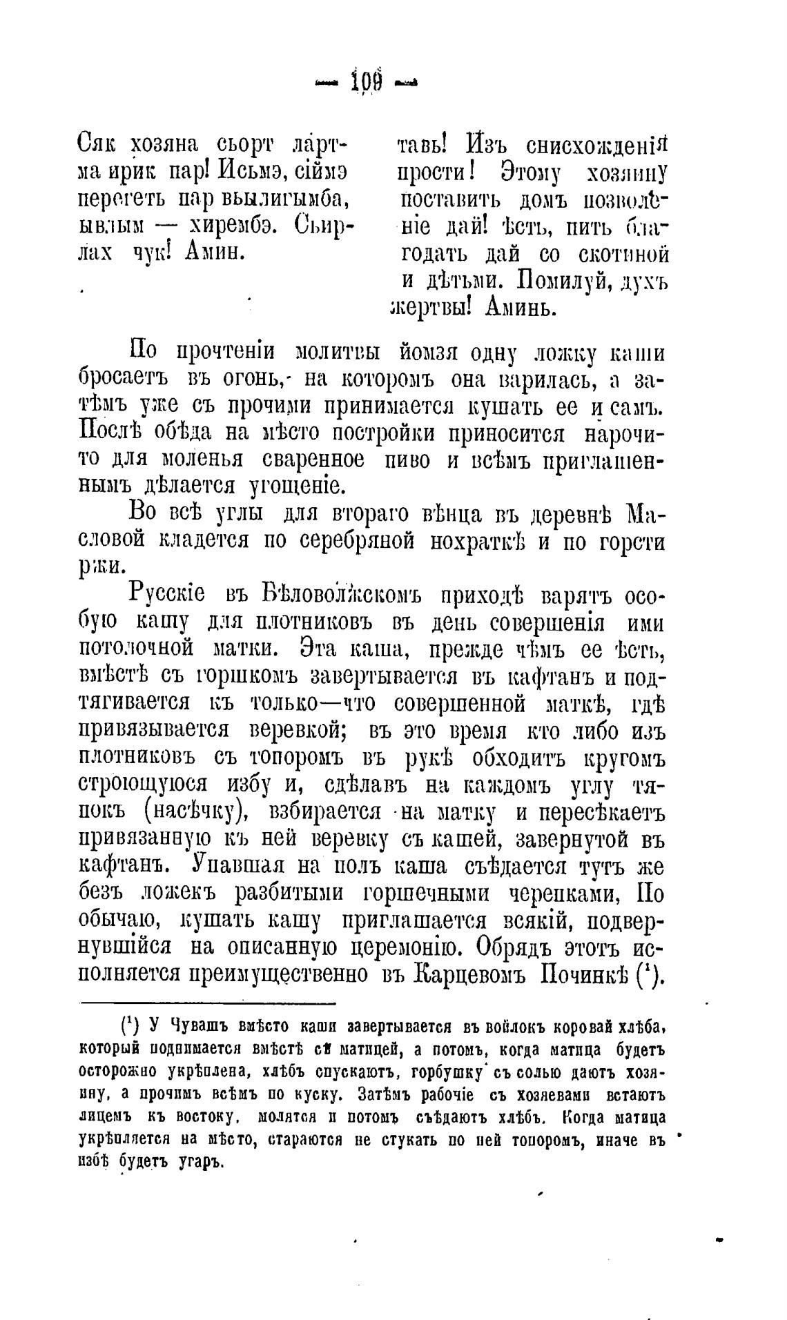 (1) У Чувашъ каши завертывается въ войлокъ коровай хдјба,