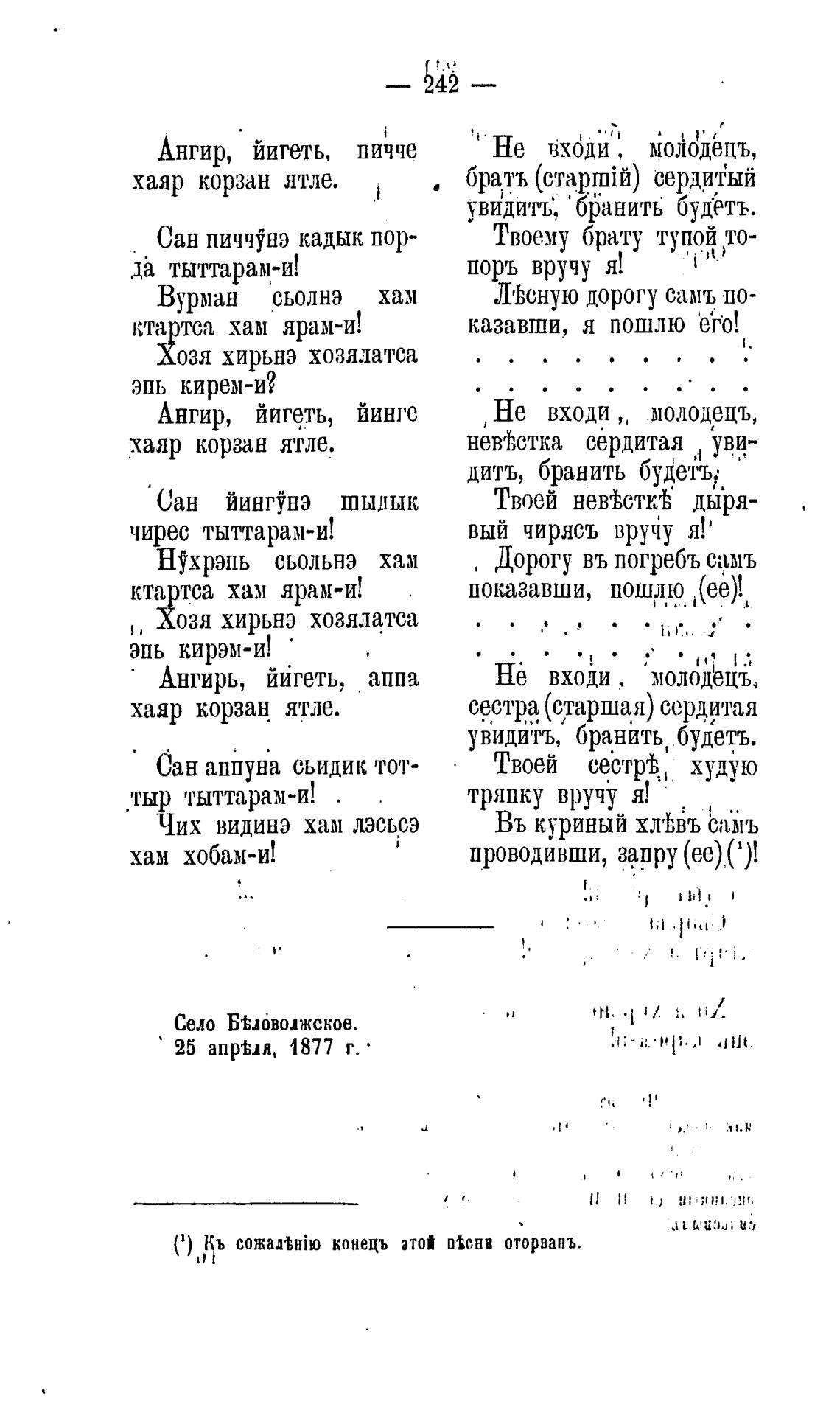 С) конецъ этой п•снв оторванъ.