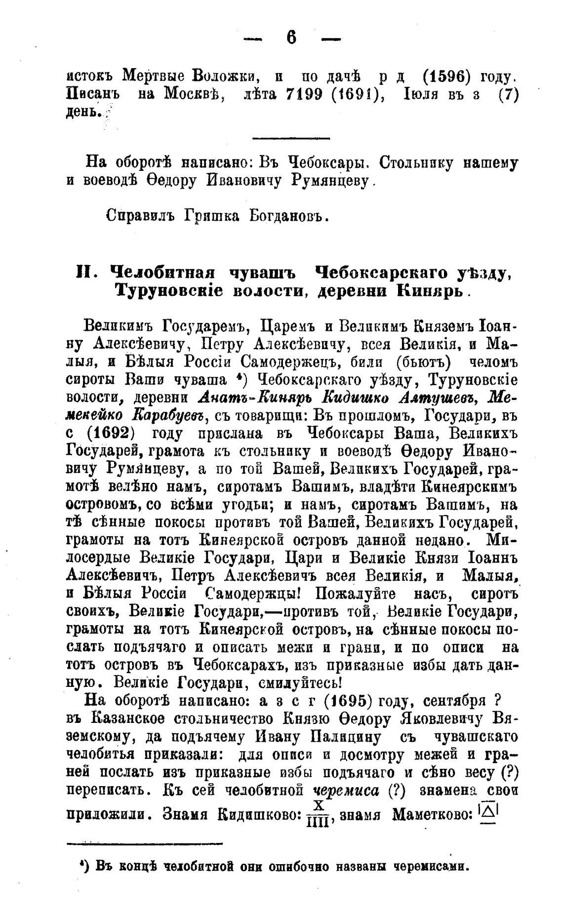 И. Челобитная чувашъ Чебоксарскаго ућзду,