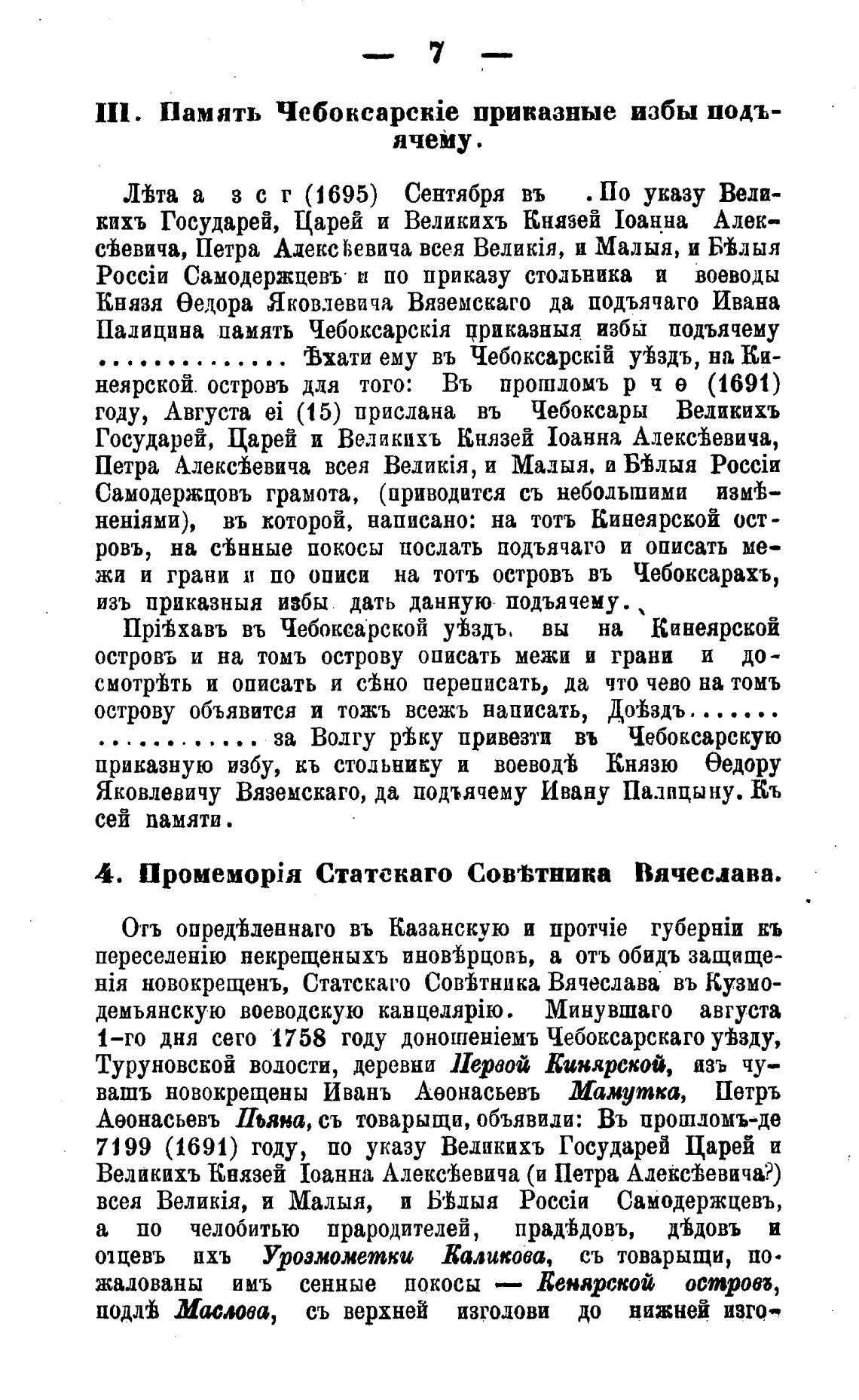 IIl. Память Чебоксаройе приказные избы подъ-