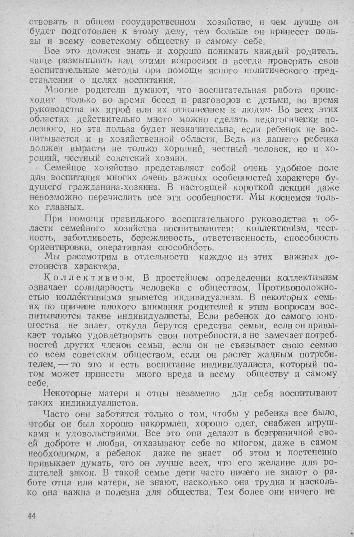 ласти семейного хозяйства воспитываются: коллективйзм, чест-