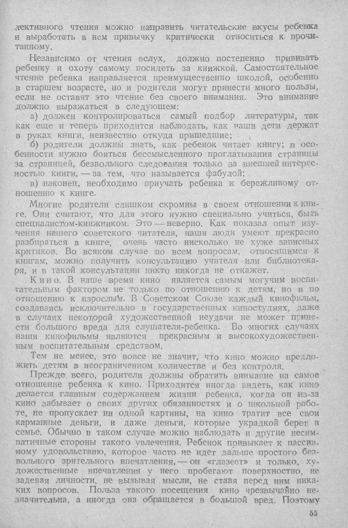 б) родители должн#л знать, как ребенок читает книгу; в осо-