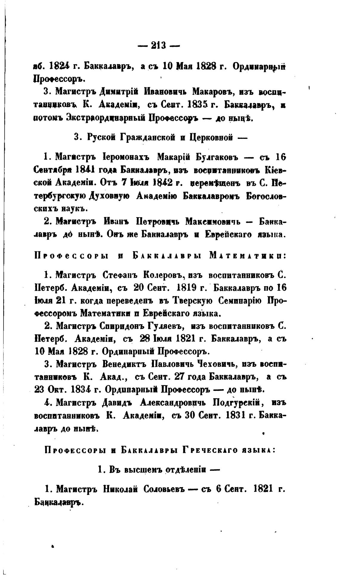 1. Магистръ Николай Соловьевъ — съ б Сент. 1821 г.