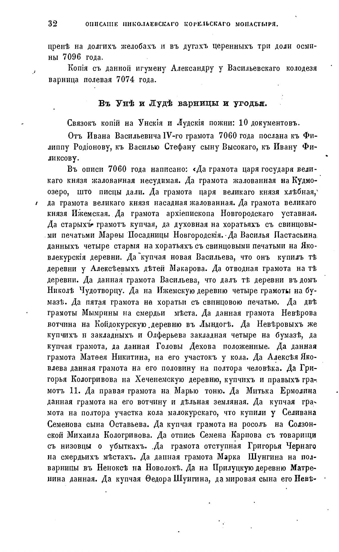ОППСА111Е ПИКОЛАЕВСКАГО корЕЛЬСКАГ0 МОНАСТЫРЯ.