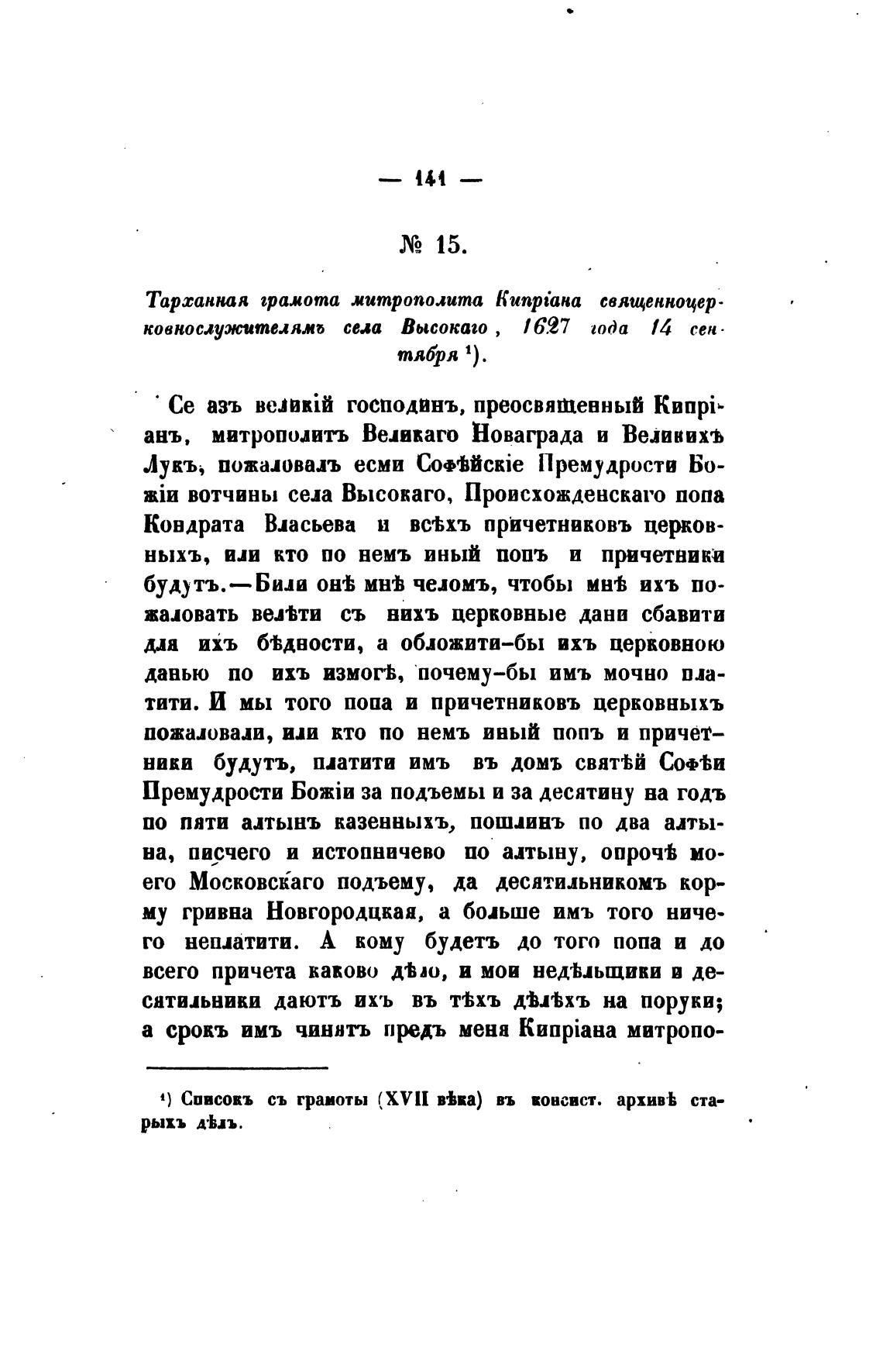 1) Спвсокъ съ грамоты (XVlI ввп) въ консист. архи“ ста-