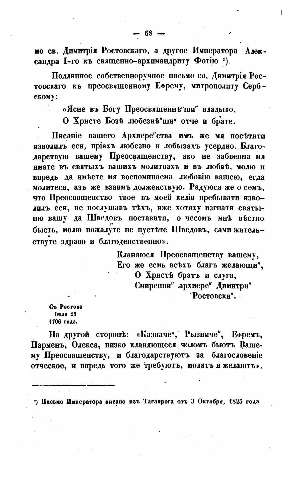 мо св. Ростовскаго, а другое Императора Алек-