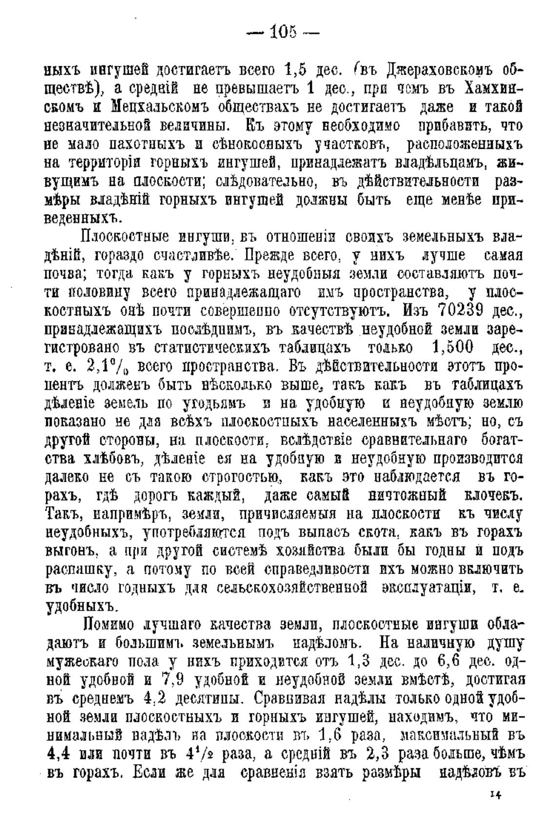 шхъ ингушей достигаетъ всего 1,5 дес. (въ Джераховскомъ об-