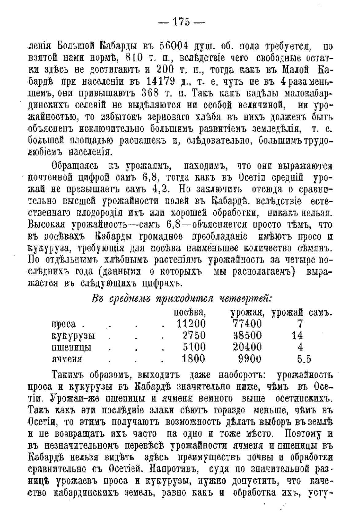 Урожаи-же пшеницы и ячменя немного выше осетинскихъ.