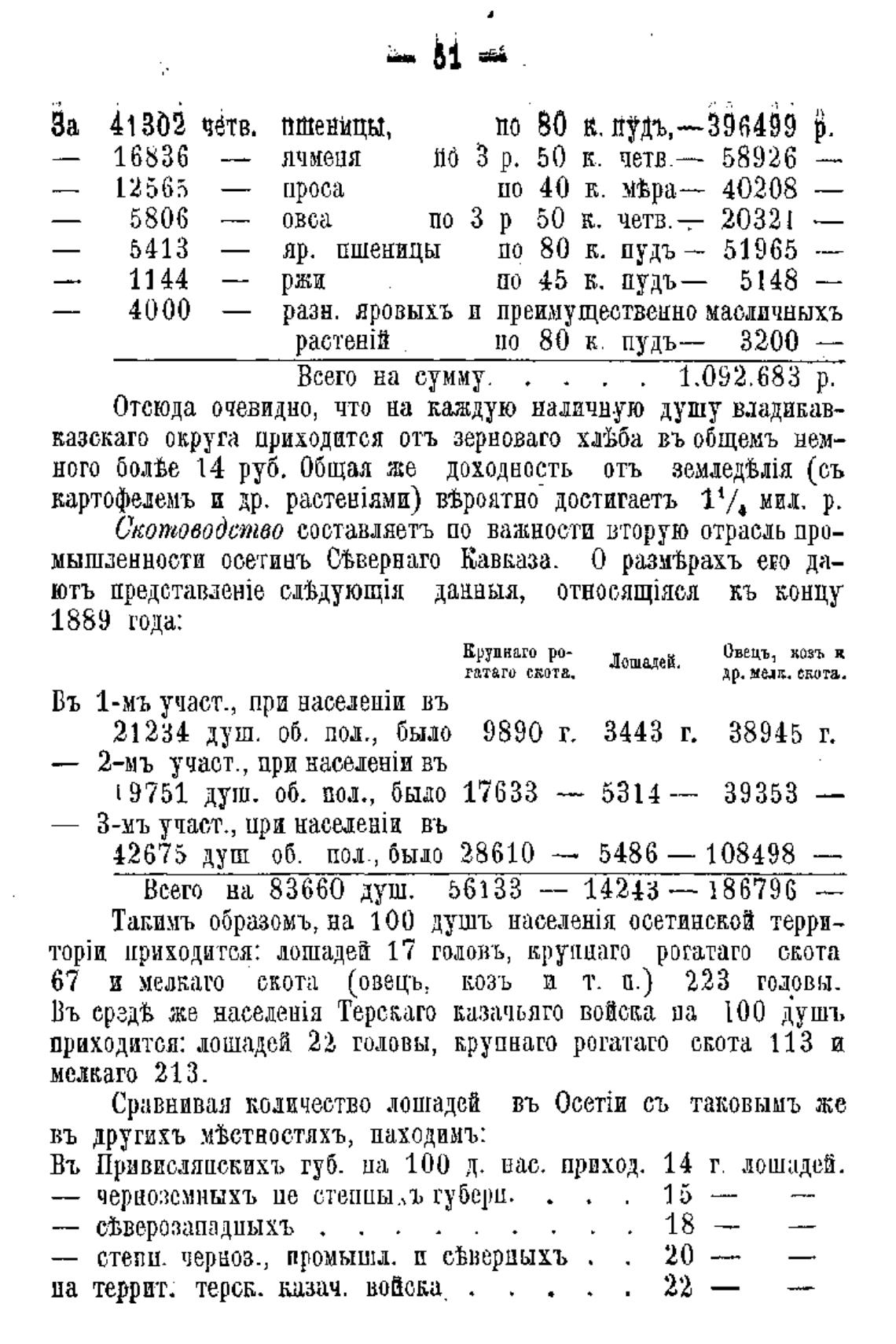 мышленности осетииъ СВвернаго Кавказа. 0 размеВрахъ ево да-