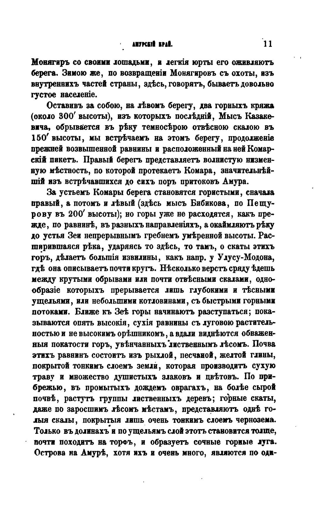 За устьемъ Комары берега становятся гористыми, сначала