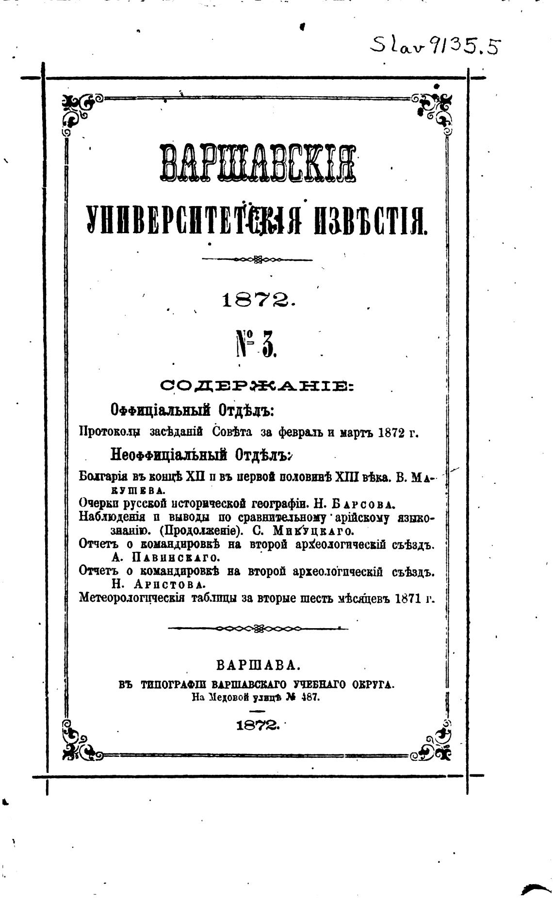 Протоколџ засьдајй Оов%та за февраль и мартъ 1872 г.