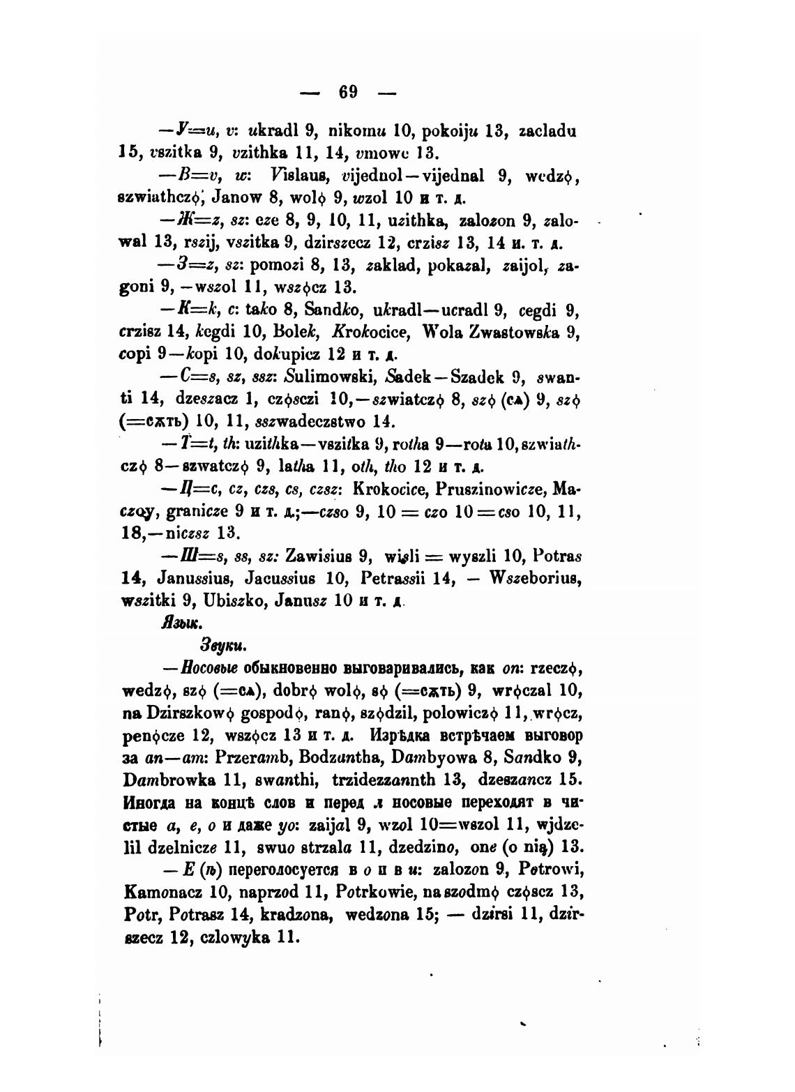 — Ц=с, cz, со, В, czsz: krokocice, Pruszinowicze, Ма-