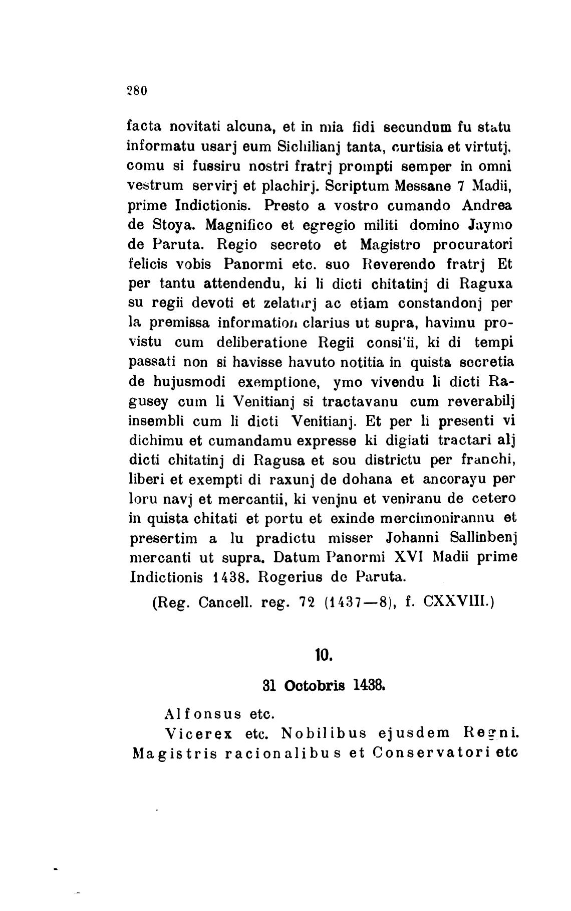 Indictionis 1438. Rogerius de Paruta.