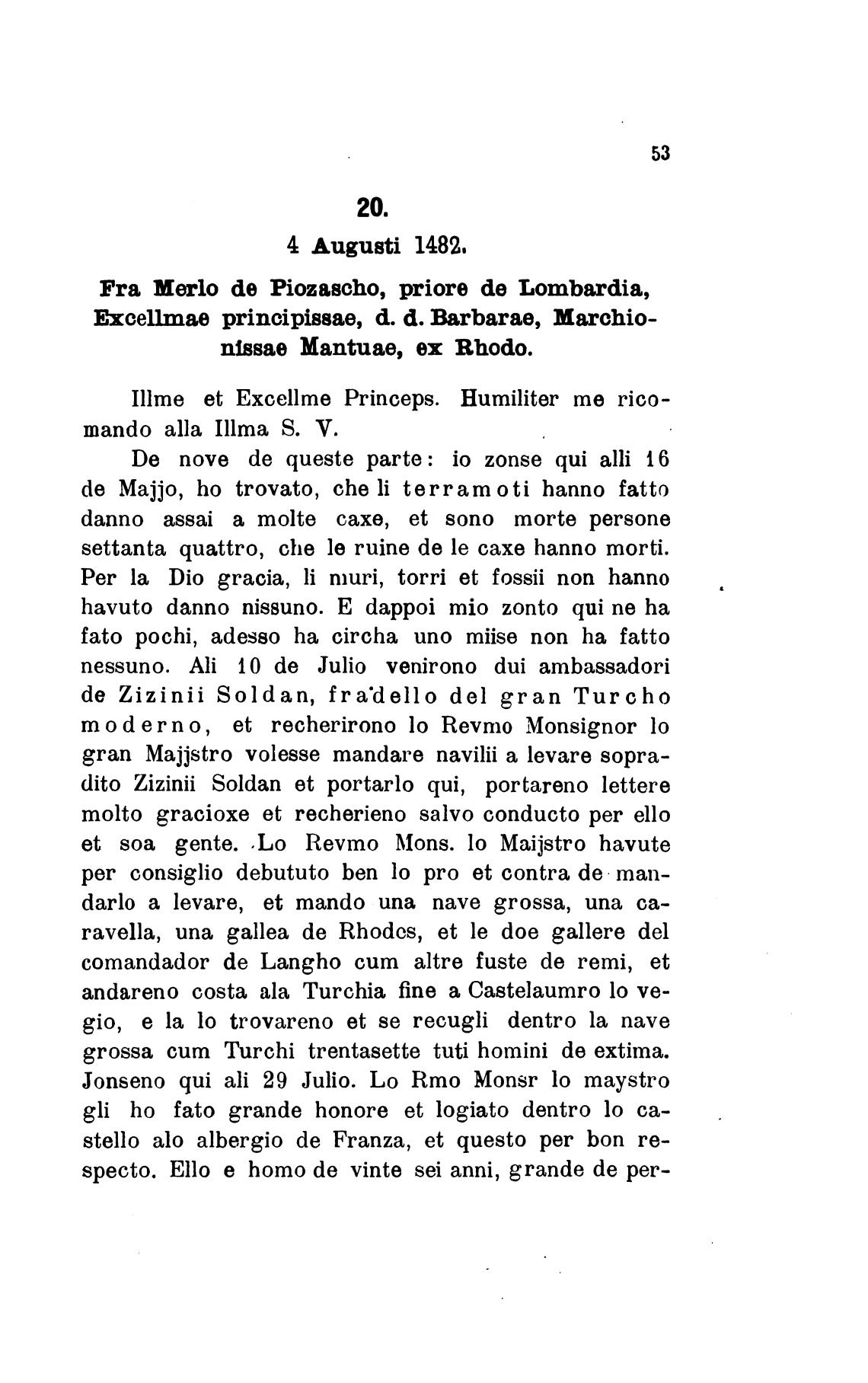 dito Zizinii Soldan et portarlo qui, portareno lettere