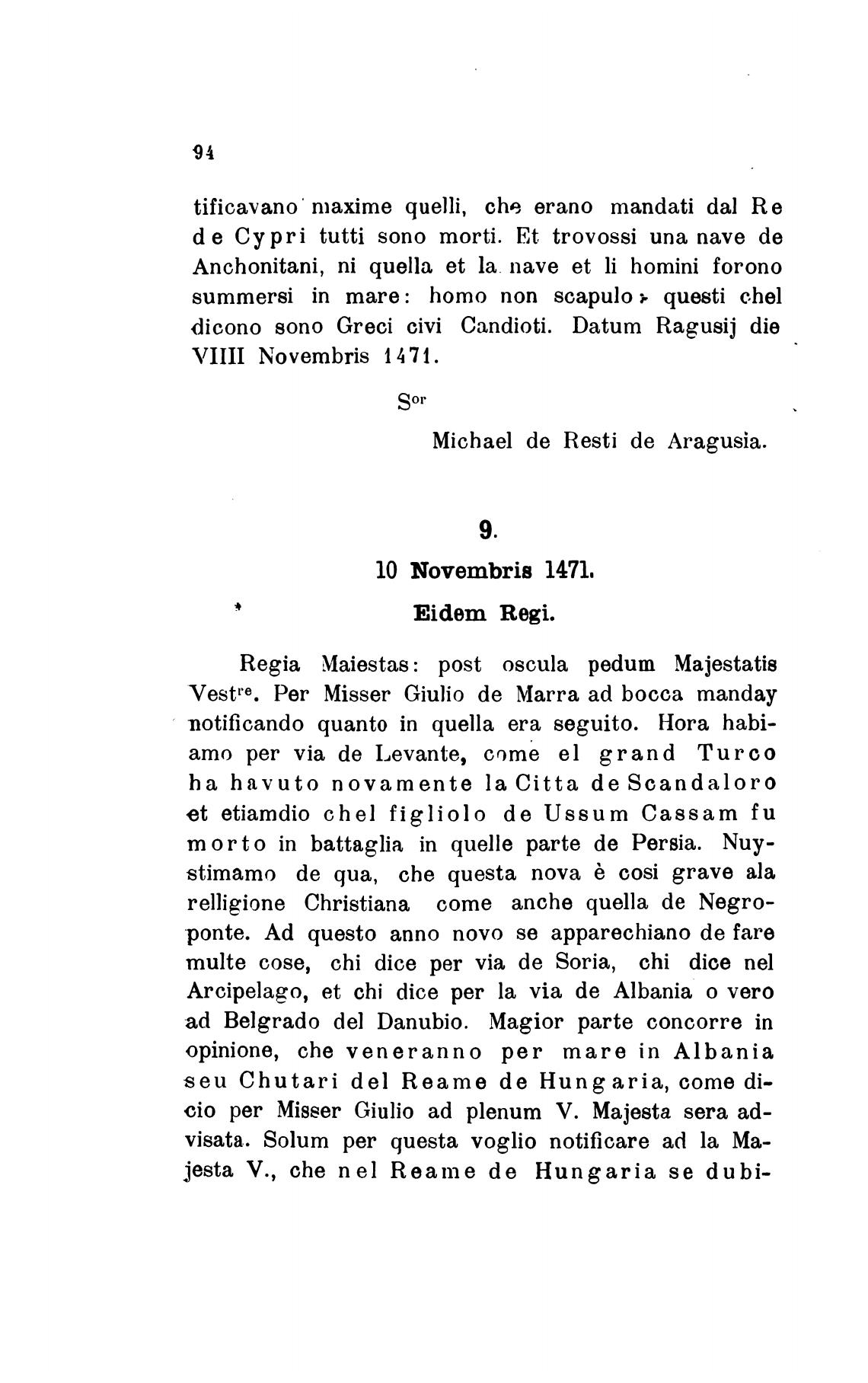 Michael de Resti de Aragusia.