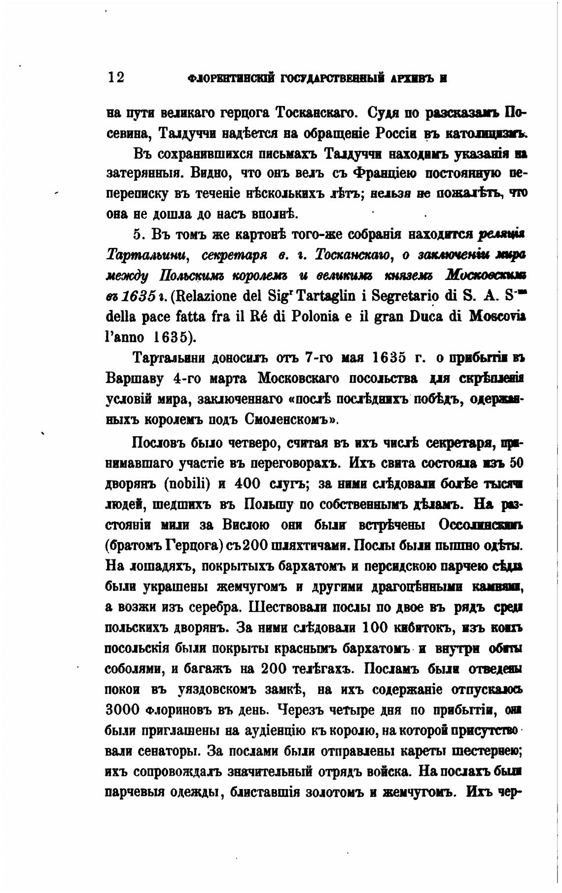 Въ сохранившихся письмахъ Талдуччи находвмъ в