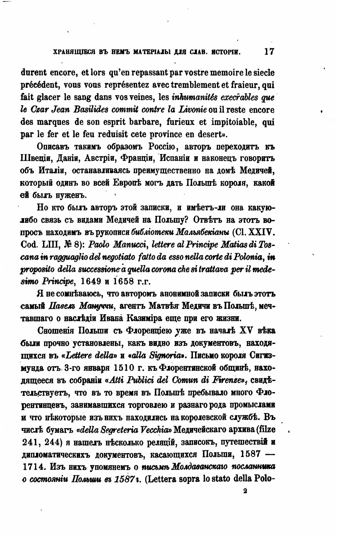 либо связь съ видами Медичей на Польшу? Отв±ть на этоть во-