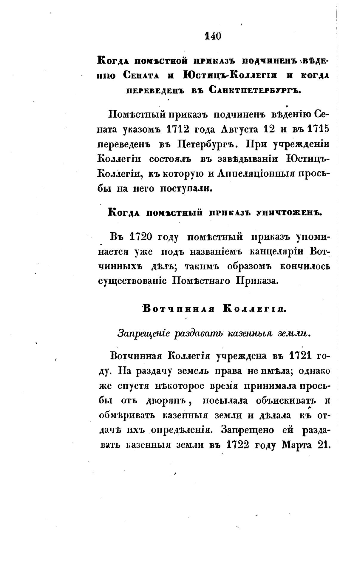 Вотчинная КоллегЈя учреждена въ 1721 го-