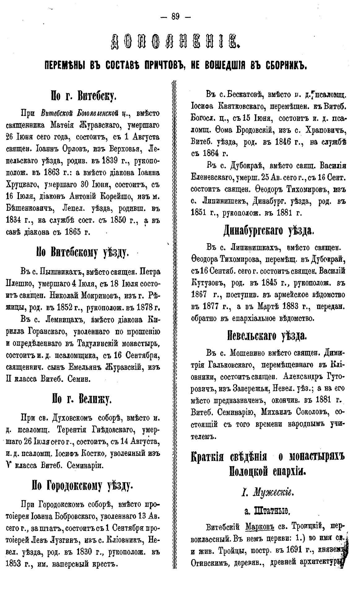 ПЕРЕМБНЫ ВЪ составБ причтовъ, НЕ ВОШЕДШ\Я ВЪ СБОРНИКЪ.