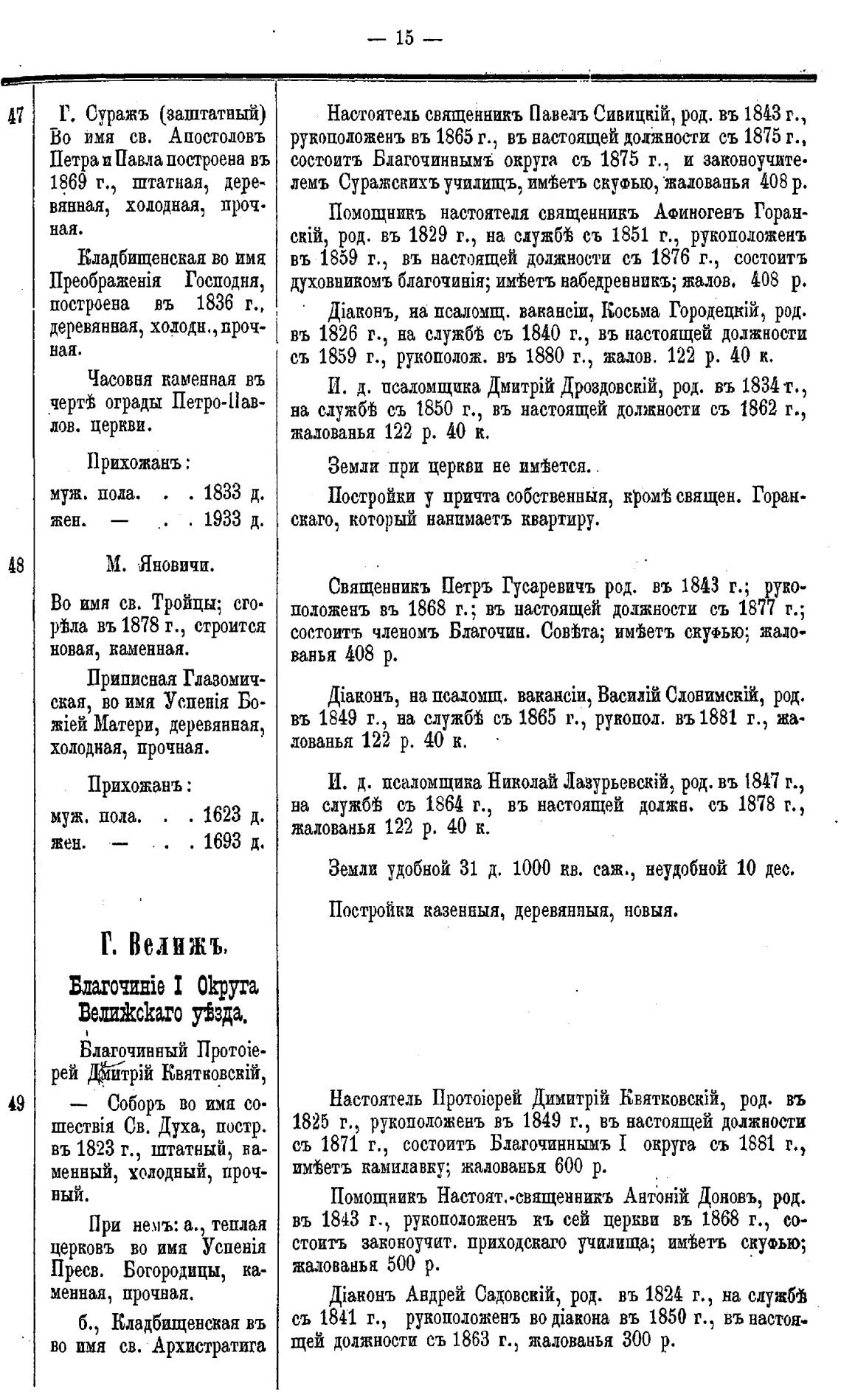 Настоятель священникъ Павель род. въ 1843 г.,