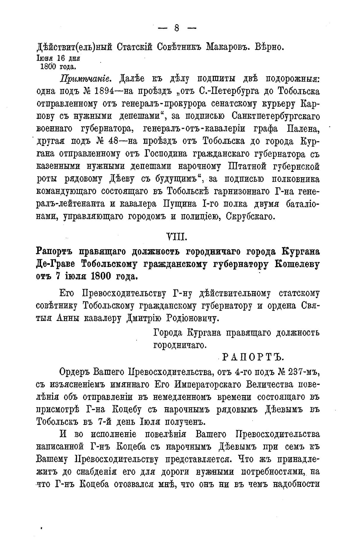 Статскт Совђтникъ Макаровъ. ВВрно.