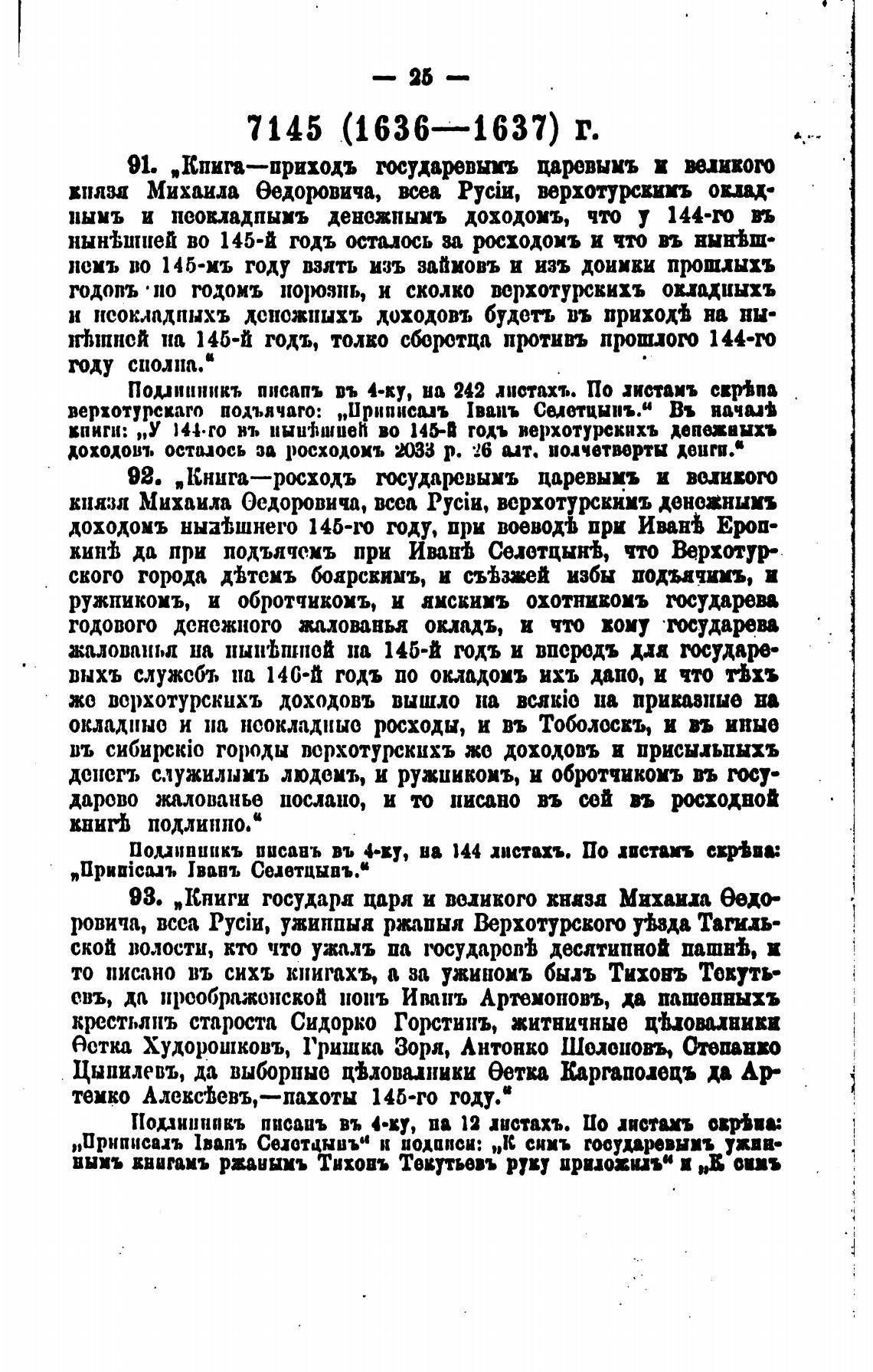 верхотурскаго подълчаго: „Приписал 1ввпъ Селвтцынъ.и Вь яачы•