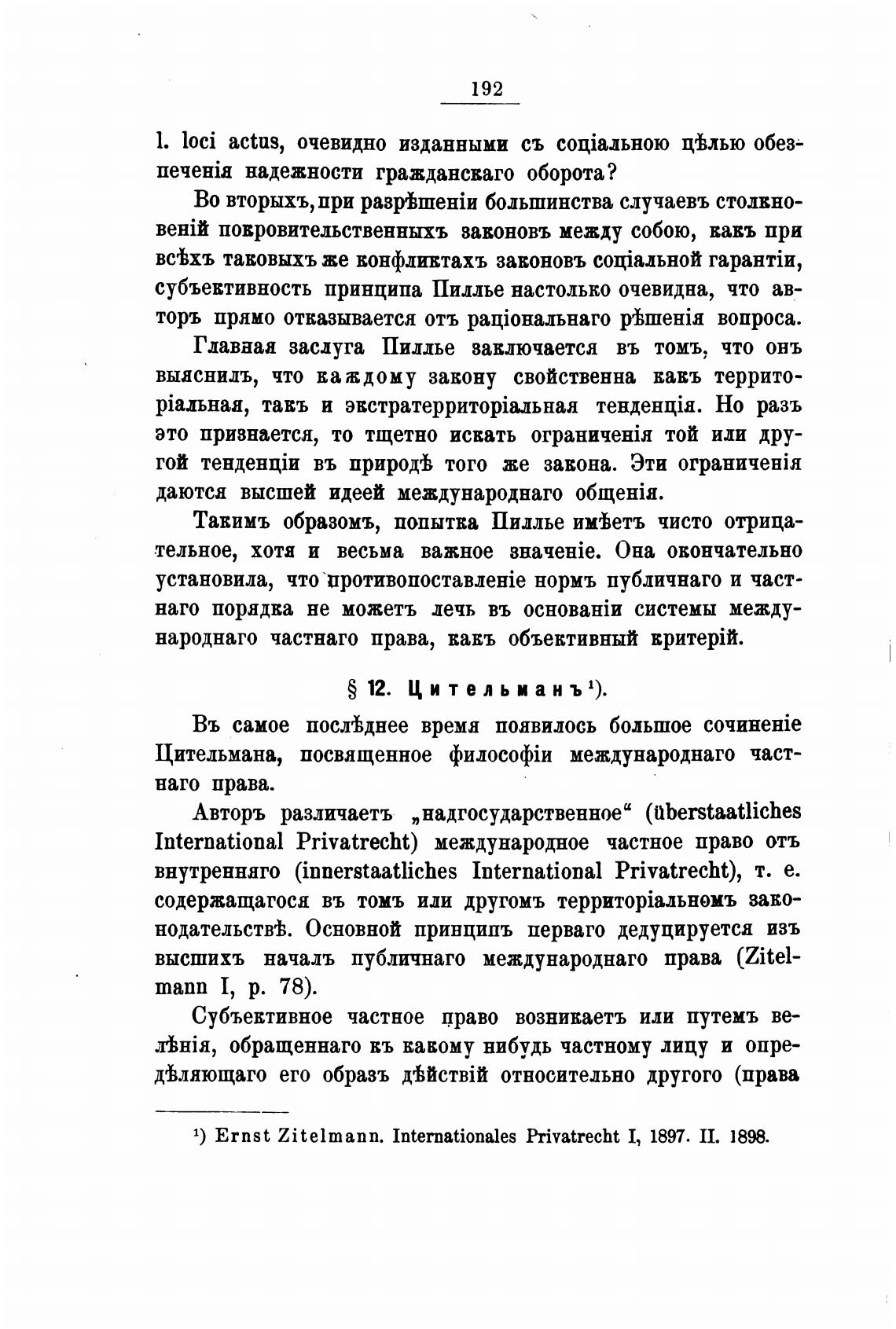 1) Ernst Zi telmann. Internationales Privatrecht 1, 1897. II. 1898.