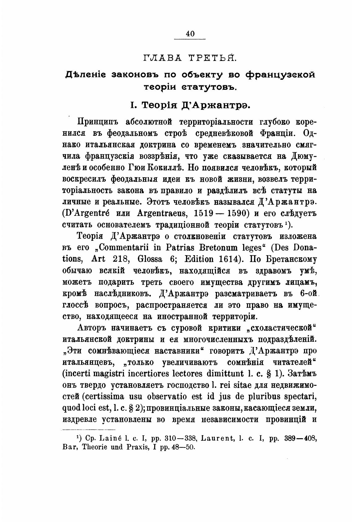 Teopia Д'Аржантрэ о статутовъ изложена