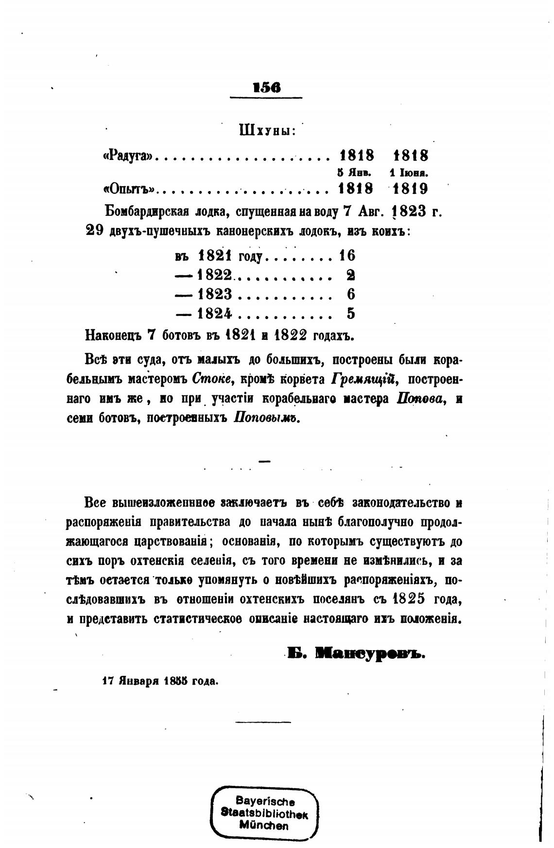 семи ботовъ, пуштныхъ Поповым.