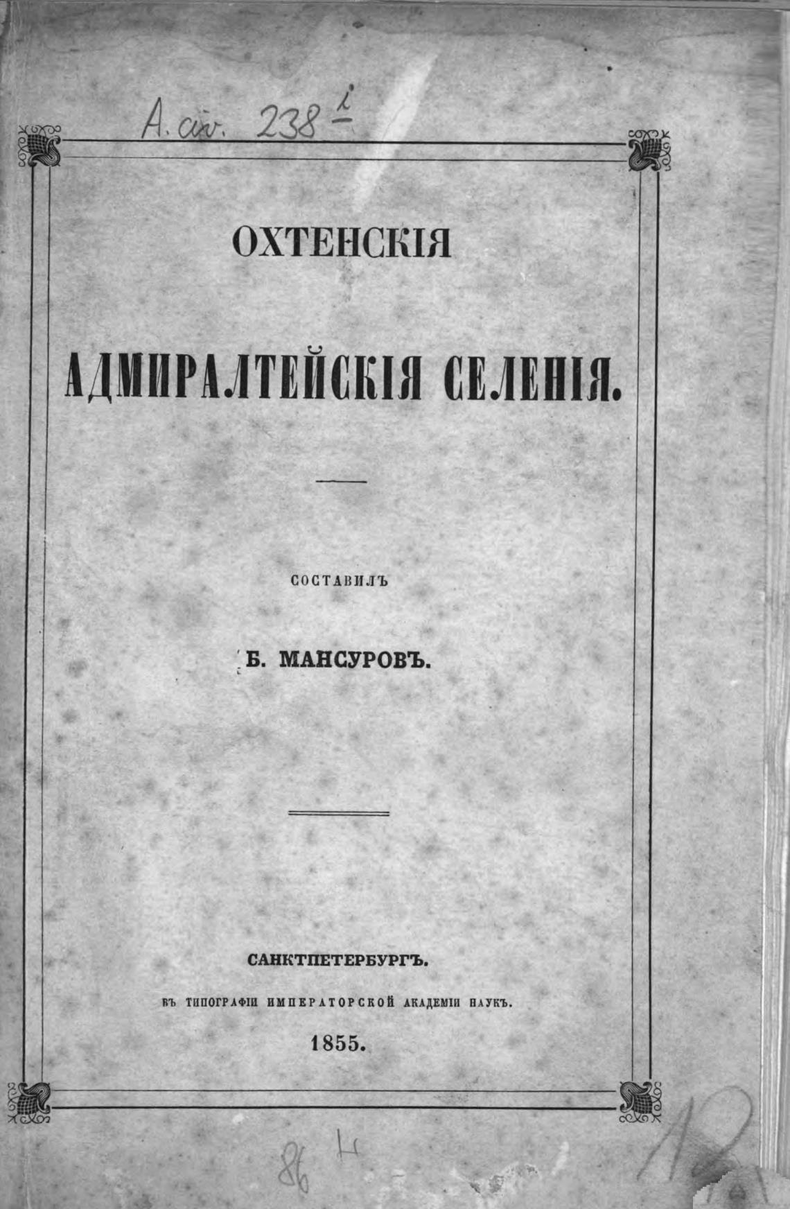 ВЪ ТИПОГРАФШ ИМПЕРАТОРСКОЙ АКАДЕМШ НАУКЪ.