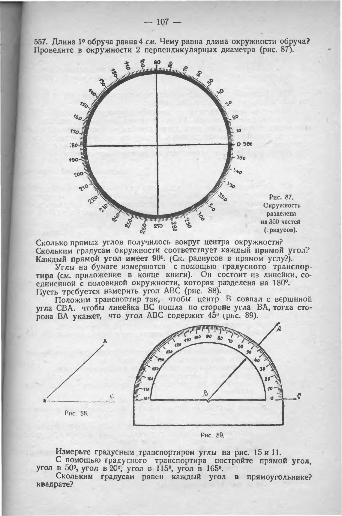 рона ВА укажет, что угол АВС содержит 450 (рис. 89).
