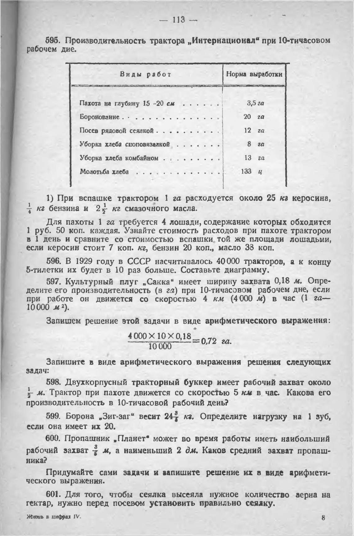 696. Производительность трактора „Интернационал“ при 10-тичасовом