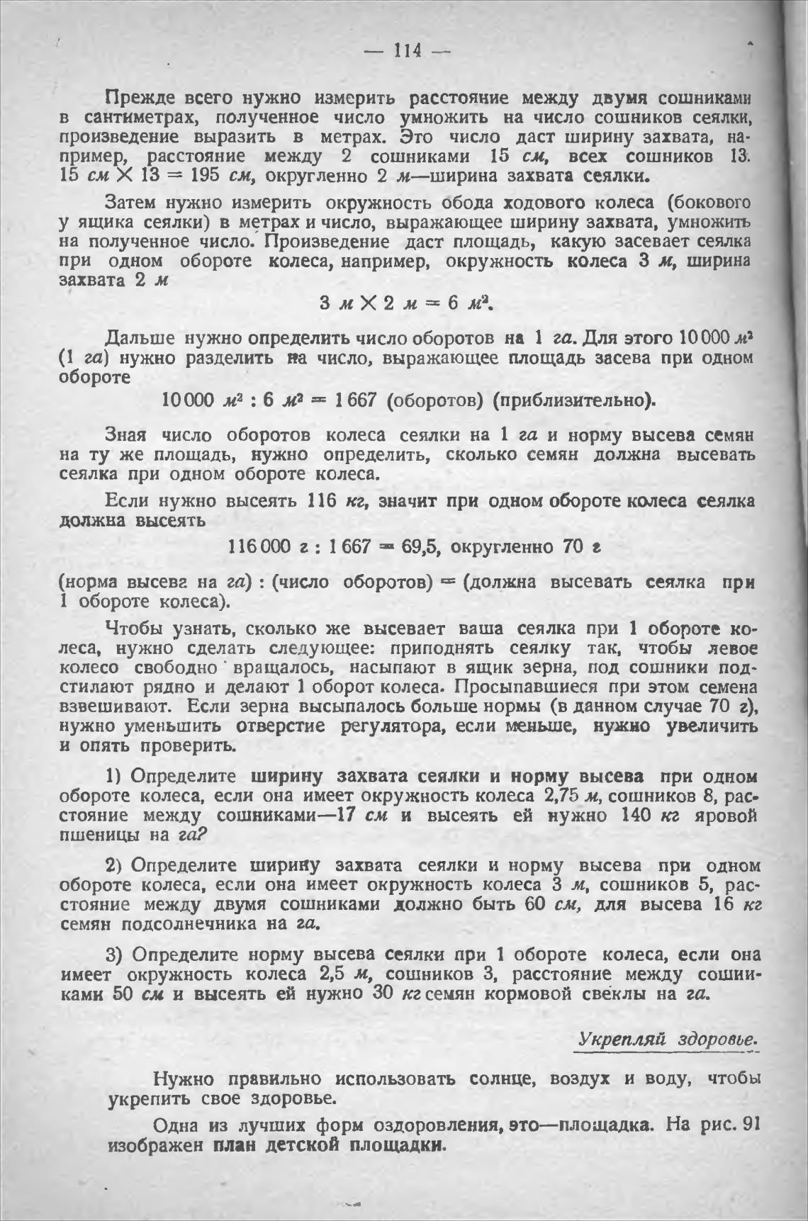 у ящика сеялки) в метрах и число, выражающее ширину захвата, умножить