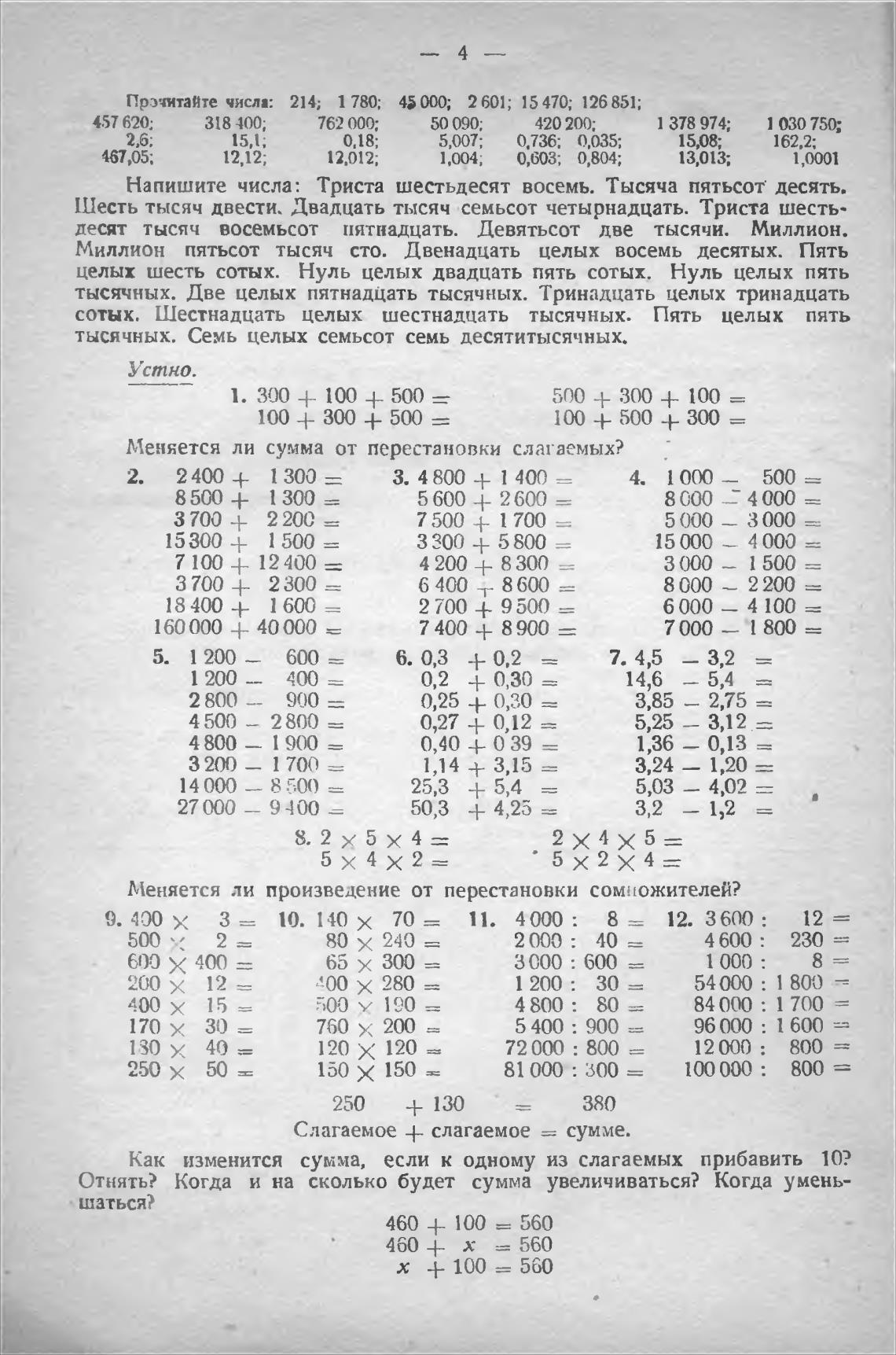 Меняется ли сумма от перестановки слагаемых?