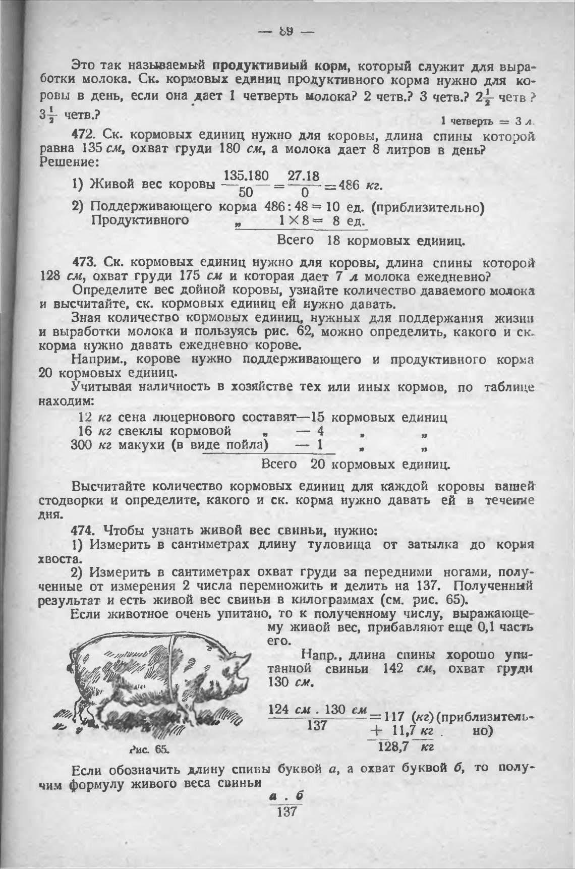 результат и есть живой вес свиньи в килограммах (см. рис. 65).