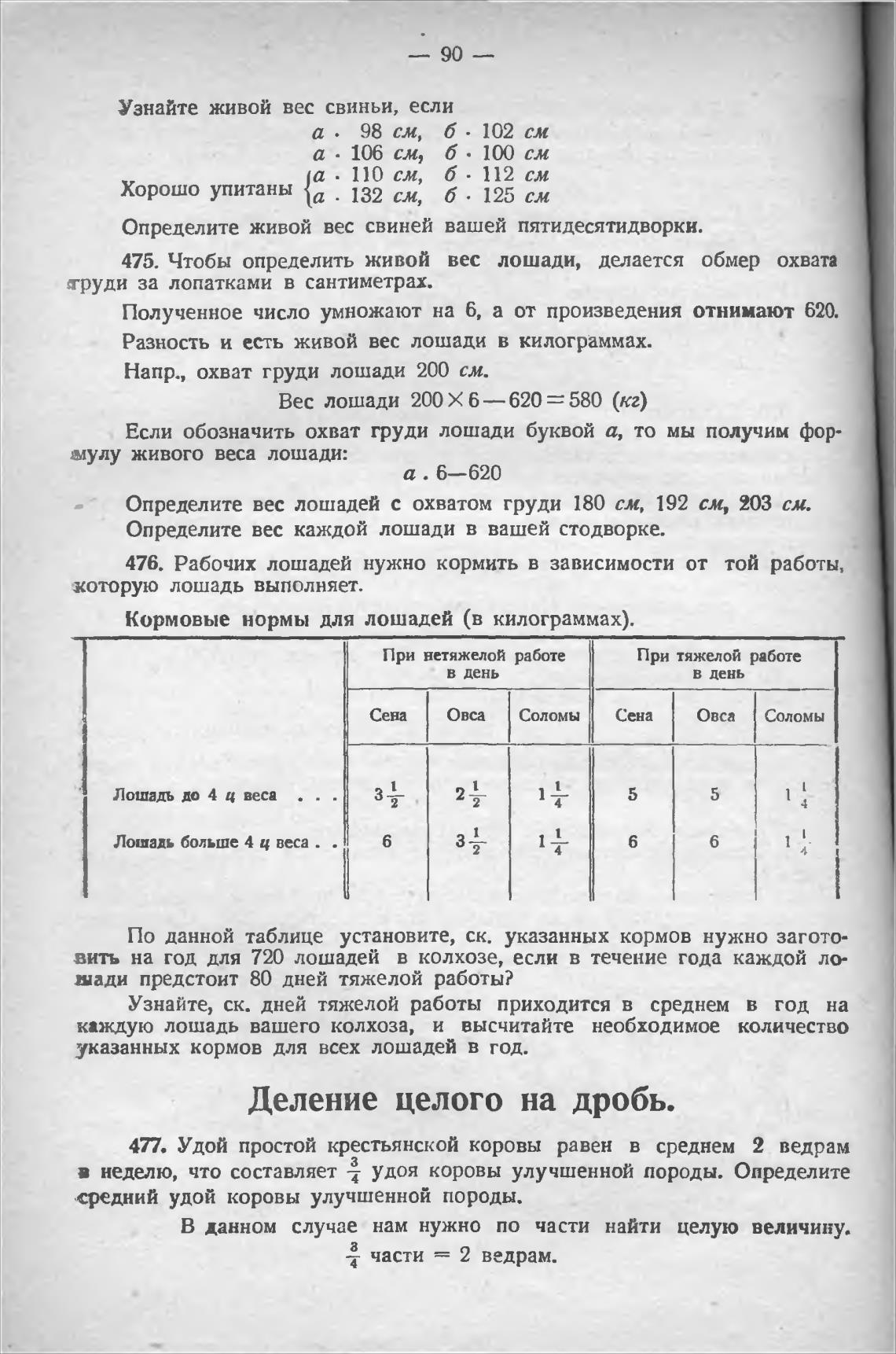 475. Чтобы определить живой вес лошади, делается обмер охвата