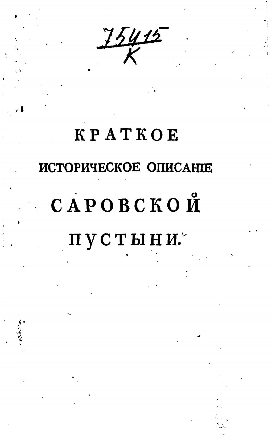 Краткое историческое описание Саровской пустыни. - Маркеллин, игумен.