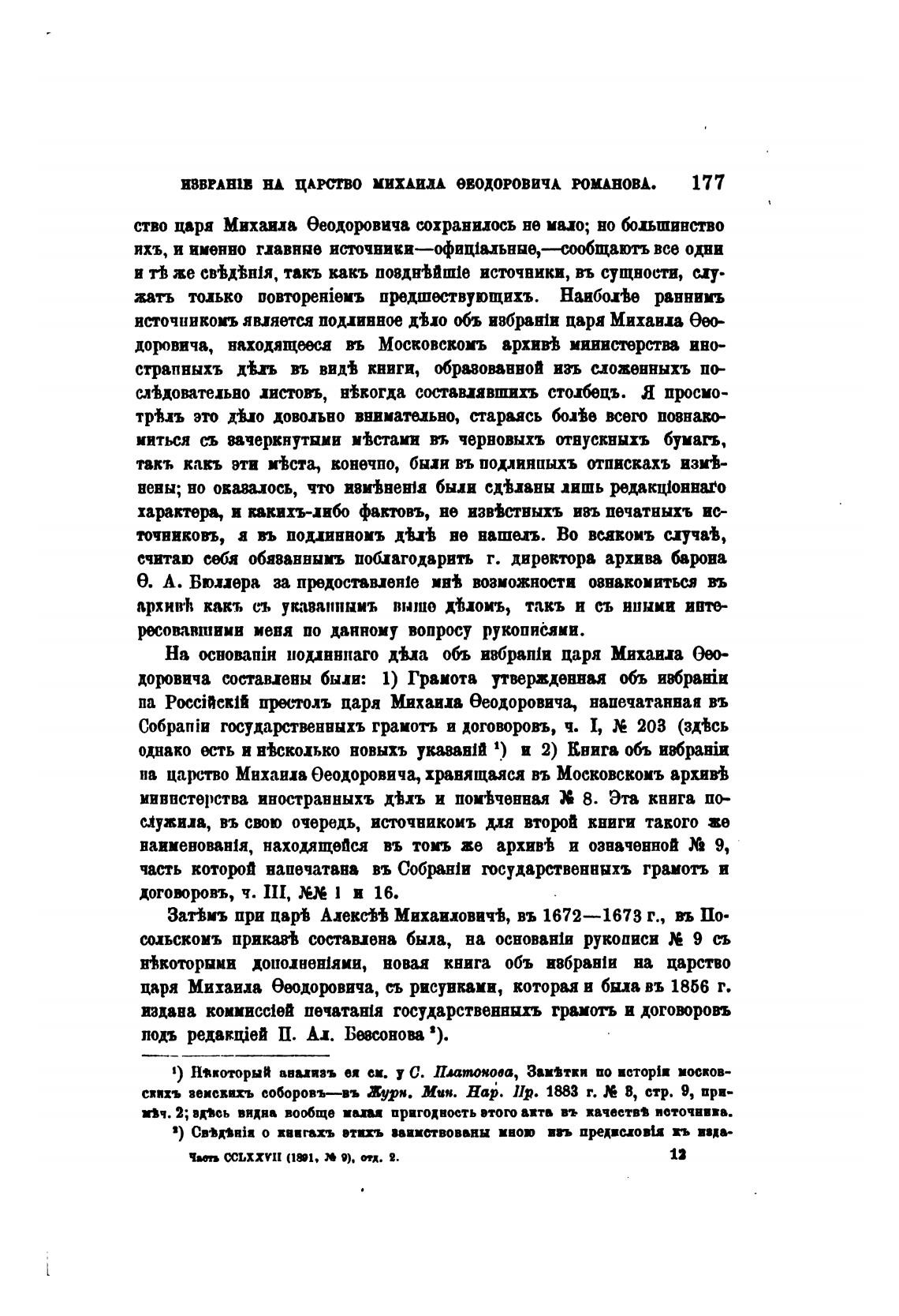 источникомъ является подливное объ ивбран1и царя Михаила