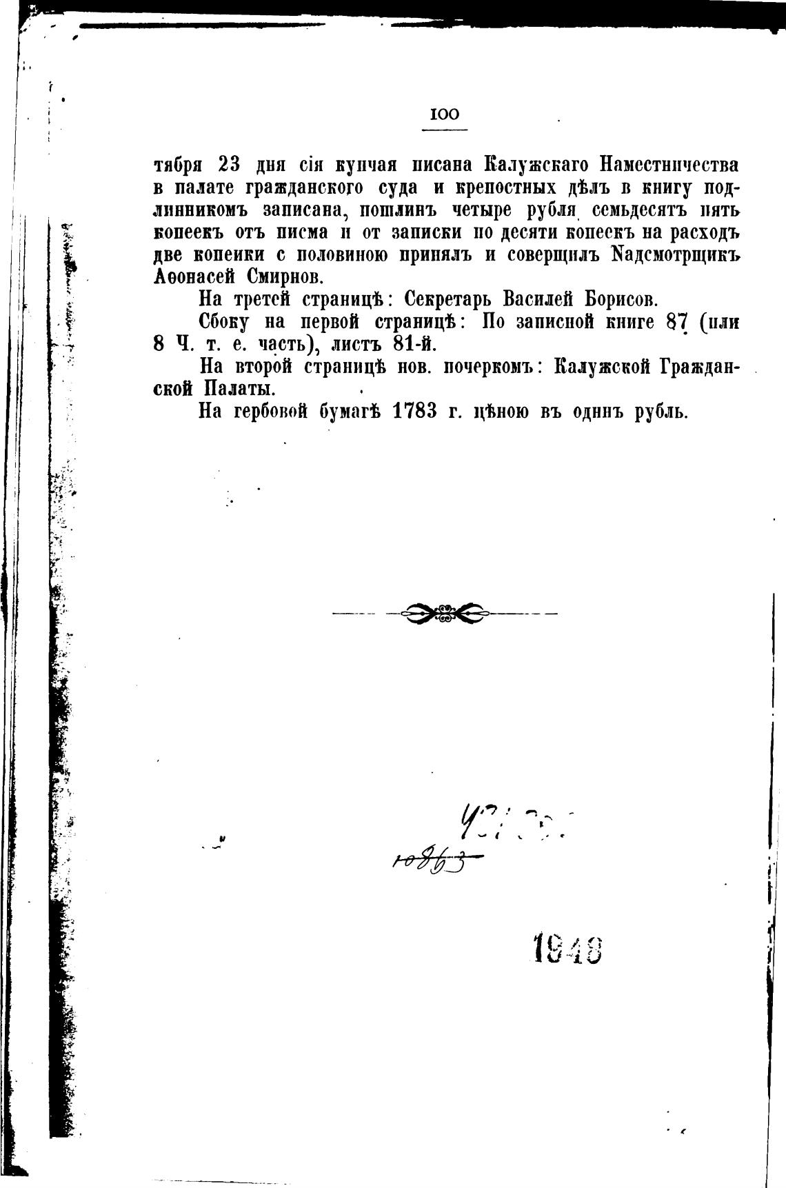 тября 23 дня ciH купчая писана Калужскато Наместничества