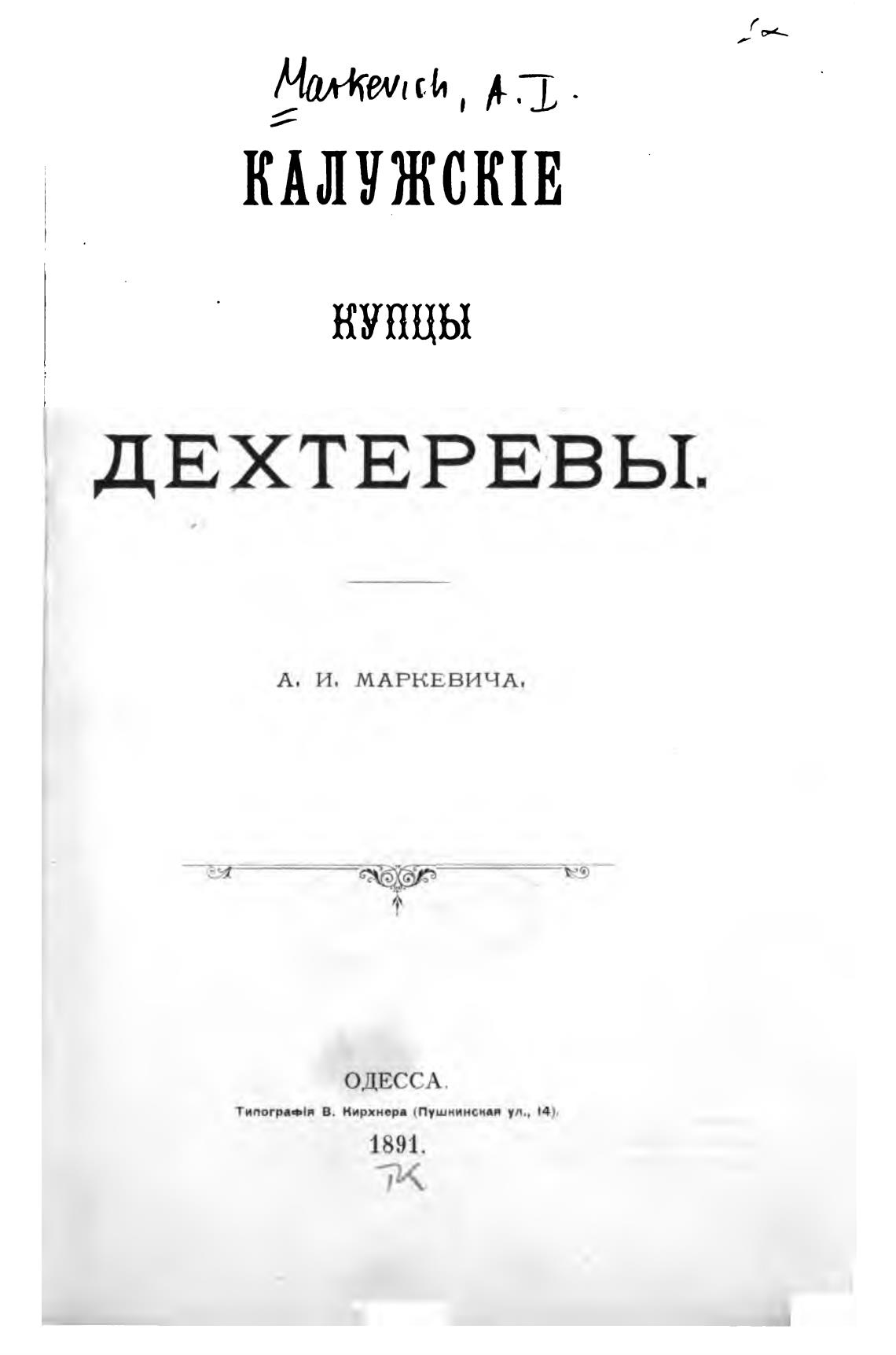 В. Нирхнер. (Пушнинснав ул., Ч,