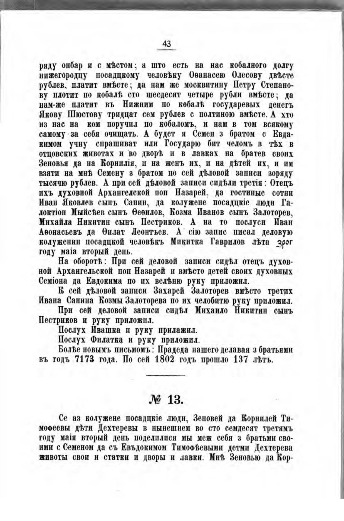 въ тодъ 7173 года. По сей 1802 тодъ пропио 137 Лтъ.