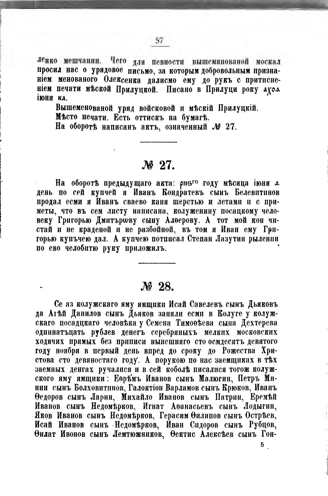 На оборо% написань актъ, означенный Х 27.