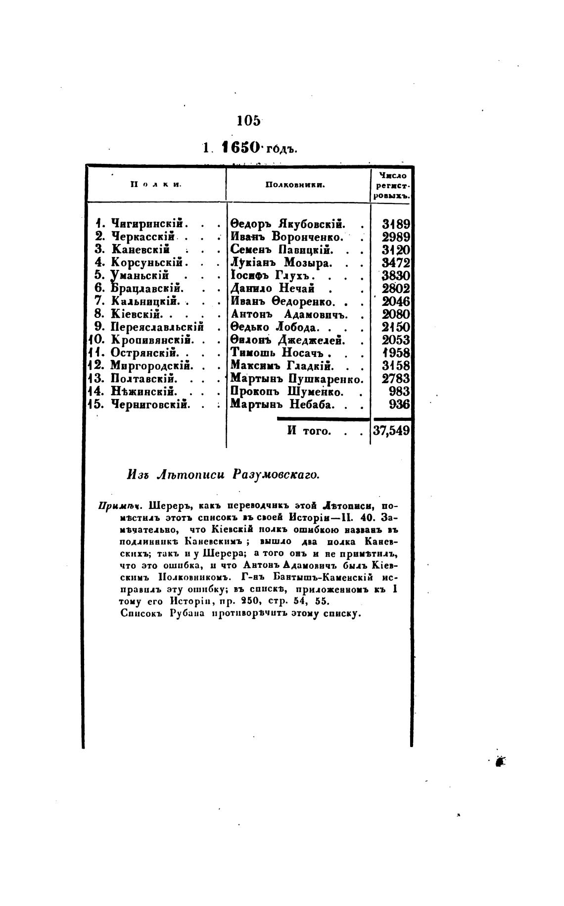 Списокъ Рубана противорвчитъ этому списку.