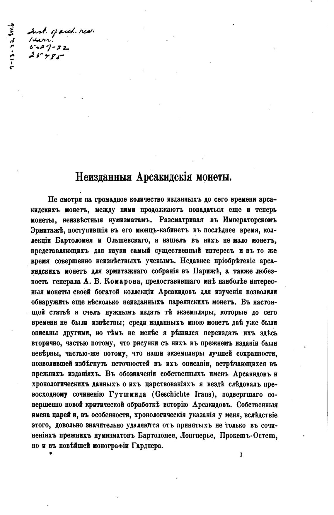вершенно новой критической обработк% Арсакидовъ. Собственныя