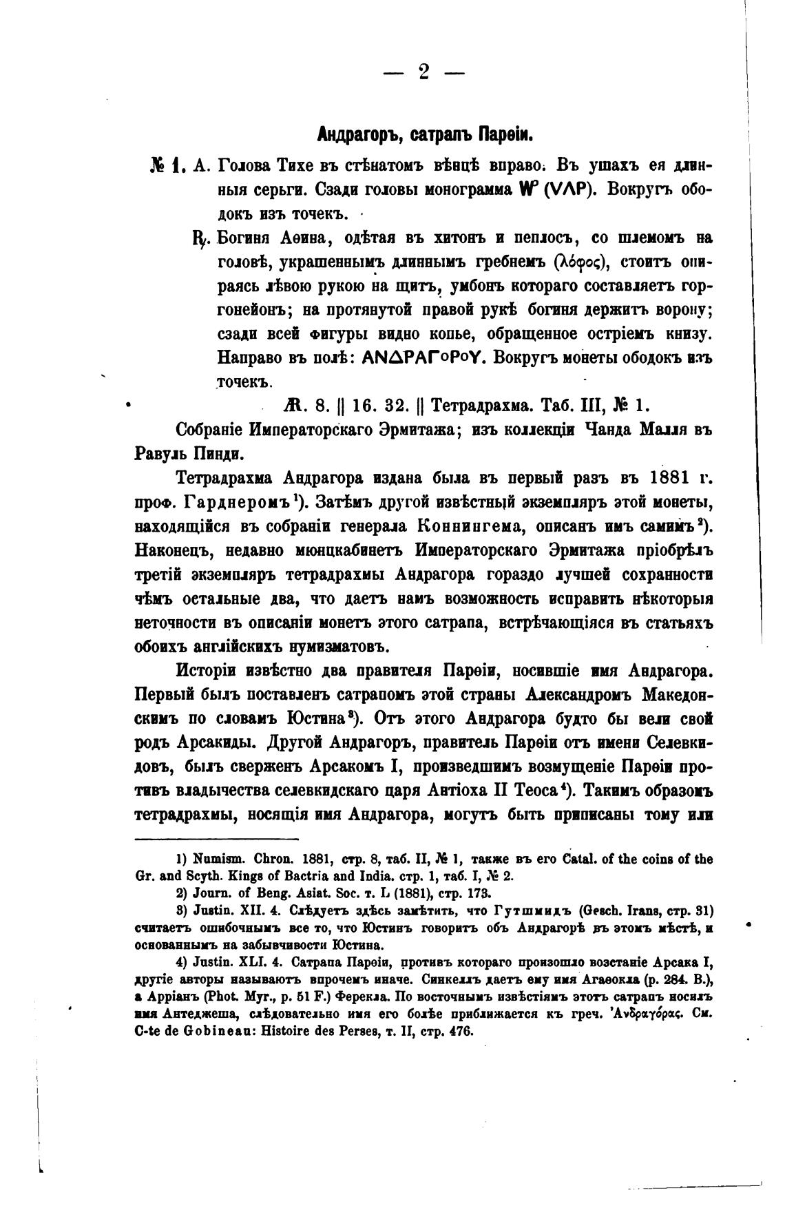 Тетрадрахма Андрагора издана была въ первый разъ въ 1881 г.