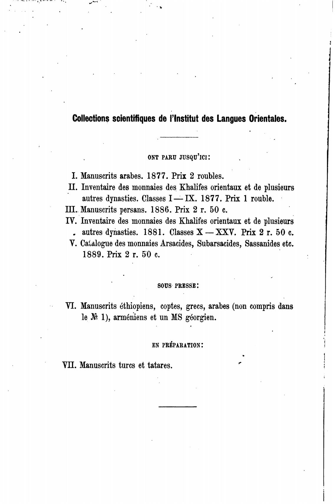 1. Manuscrits arabes. 1877. Prix 2 roubles.