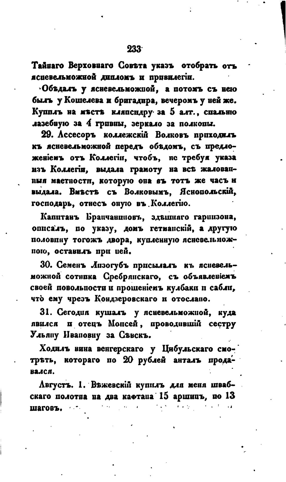 31. Сегодил кушиъ у ясневельможиой, куда