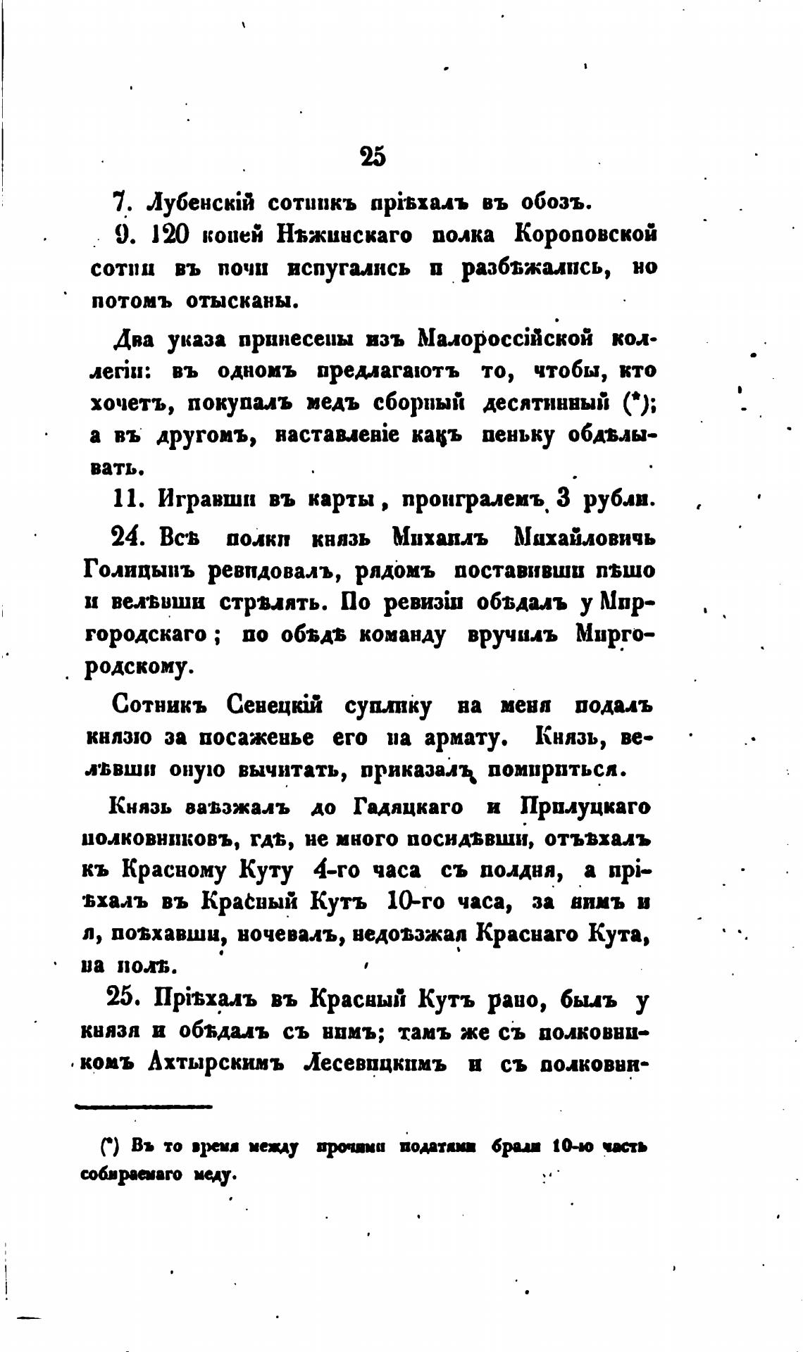 князя и оббдиъ съ нпмъ; тамъ же съ полковни-
