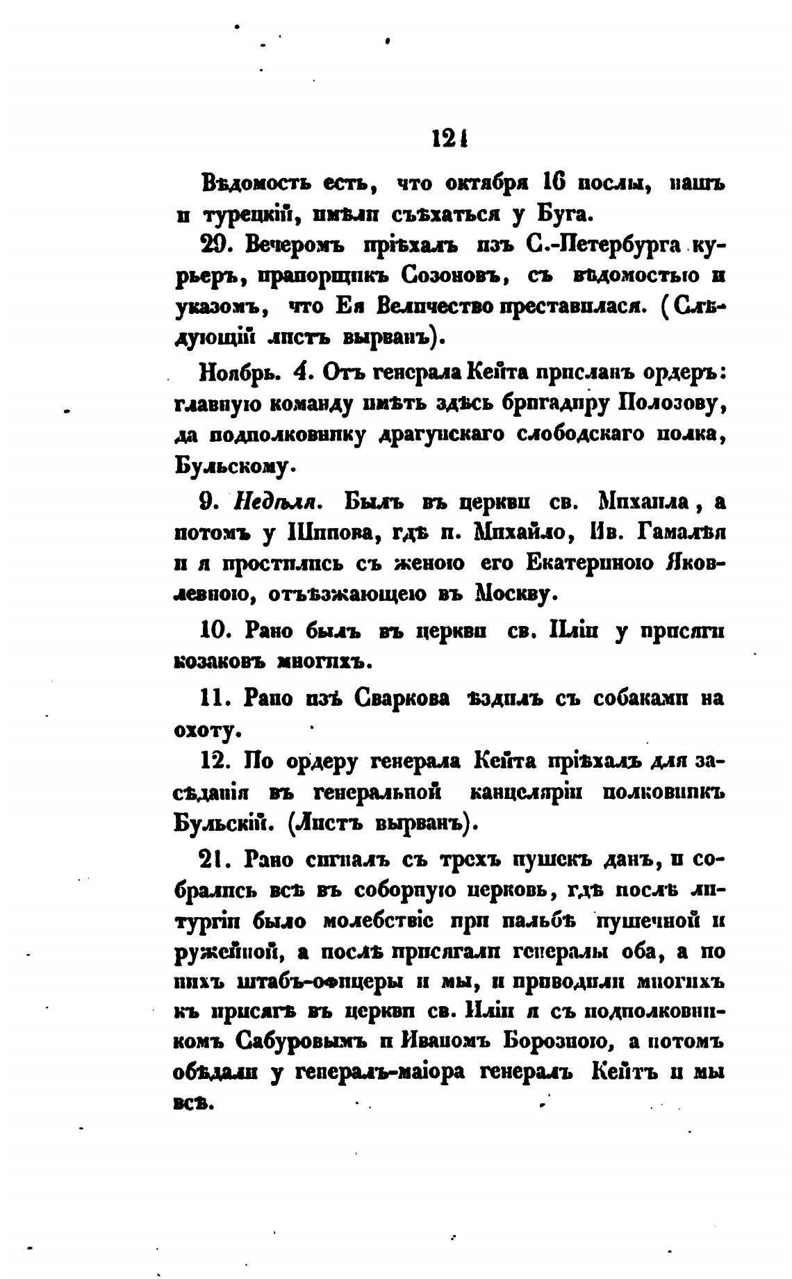 Ноябрь. 4. Отъ генерала Кейта прпслапъ ордеръ: