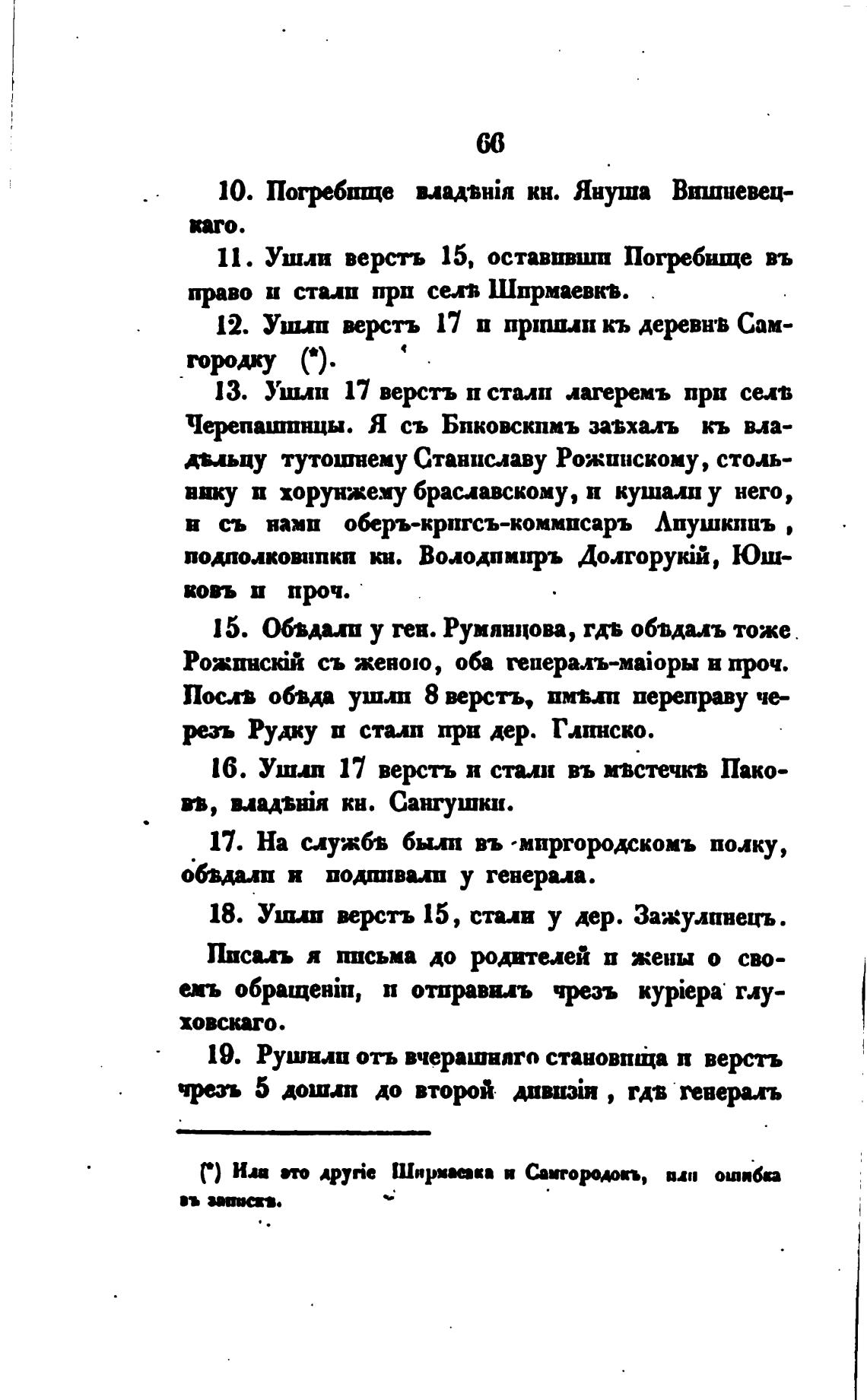 19. Рушв.«и отъ вчерашнпго становпща п версть